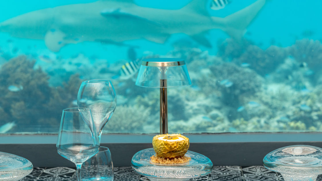 First of it’s kind, You & Me by Cocoon's stand out feature is a fully submerged underwater restaurant that gives diners a view of the Maldives' breathtaking marine environment, bringing a unique Michelin star dining experience to Maldives. Serving for only 20 pax at a time, a set menu is provided to indulge this luxury experience.